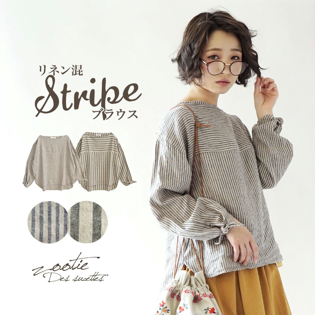 zootie(ズーティー):ストライプ リネンミックス プルオーバーブラウス