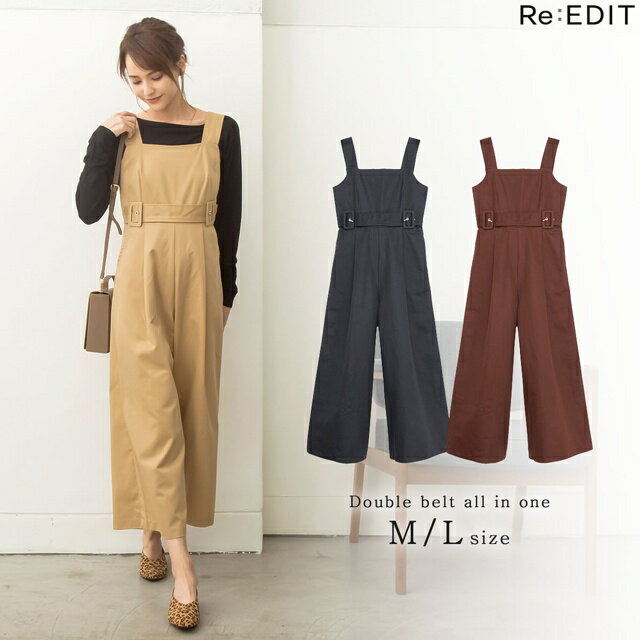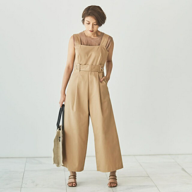 インナー次第で夏コーデにも秋コーデにも 着回せるオールインワンがこの季節重宝します 脚長効果抜群のハイウエストデザインで 簡単にスタイルアップが叶います♪