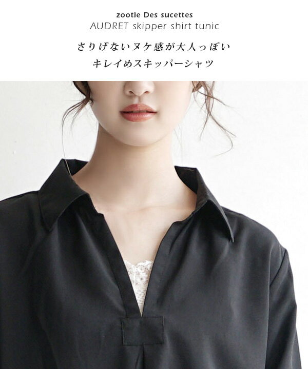 NEW! オードレスキッパーシャツチュニック V字に胸元が開いたスキッパーデザインは、1枚持っておくと着こなしの幅がグンと広がる優秀アイテム。女性らしさを演出してくれると共に、お顔周りをシャープに見せる効果まであるんです。ほんのりシャリ感のあるさらりとした手触りも大人っぽい♪ |