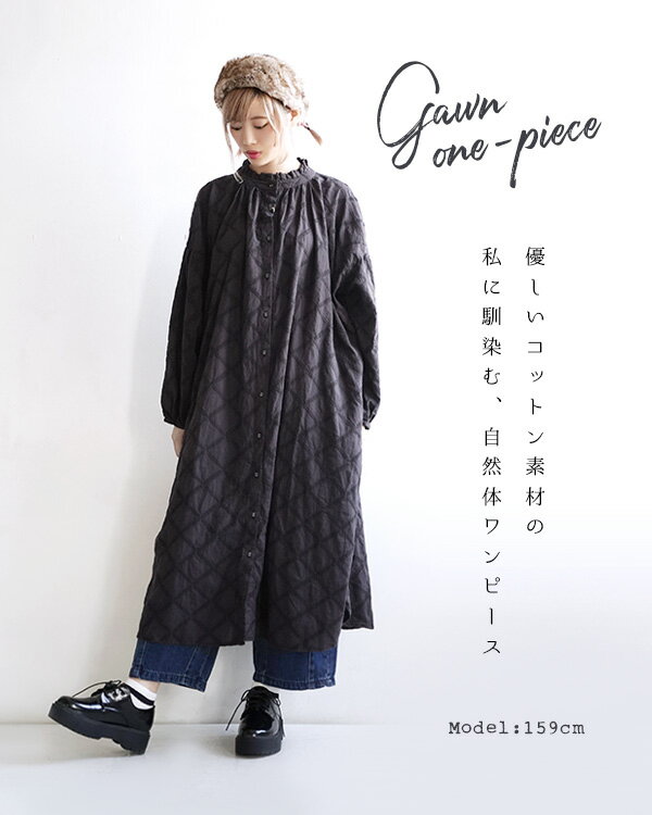 NEW! コットンリネングレンチェックワイドワンピース 刺繍で矢羽柄が浮かび上がった、レースのように甘く繊細なワンピース。裾までボタンで開閉するシャツタイプですので、羽織としても使えます。 |