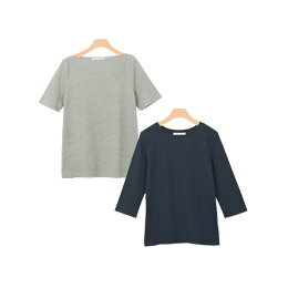 ボートネックのデザインはカジュアルなスタイリングに程よい品を添えてくれます。