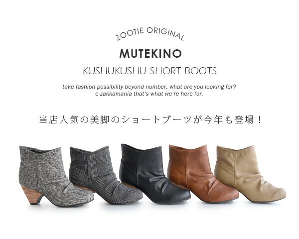 NEW! MUTEKINOクシュクシュショートブーツ お待たせしました、待望の再登場!名前の通り、まさに「無敵」なこちらのブーツ。しっかり足が綺麗に細く見え、なのにヒールを感じさせない安定感のある履き心地。しかもクセの無いデザインで幅広いコーデとシーズンで使えます! |
