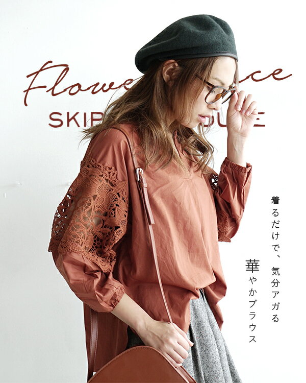 NEW! レーススリーブキーネックブラウス フラワーモチーフのレースから肌が透ける、繊細な袖デザインのブラウス。秋を感じる新色を追加し再登場です。 爽やかなコットン100%のシャツ素材をベースに、ドロップショルダーになったお袖の切替部分がモチーフレースに。大きめのフラワーモチーフでデザインされ、シースルー感が際立ちます。 |