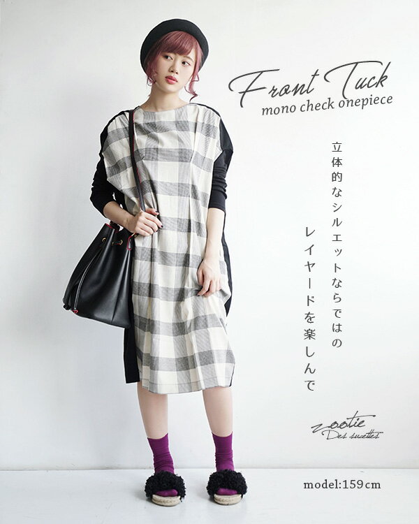 | SALE!→2,797円(税込) モノトーンチェックフロントタックワンピース |