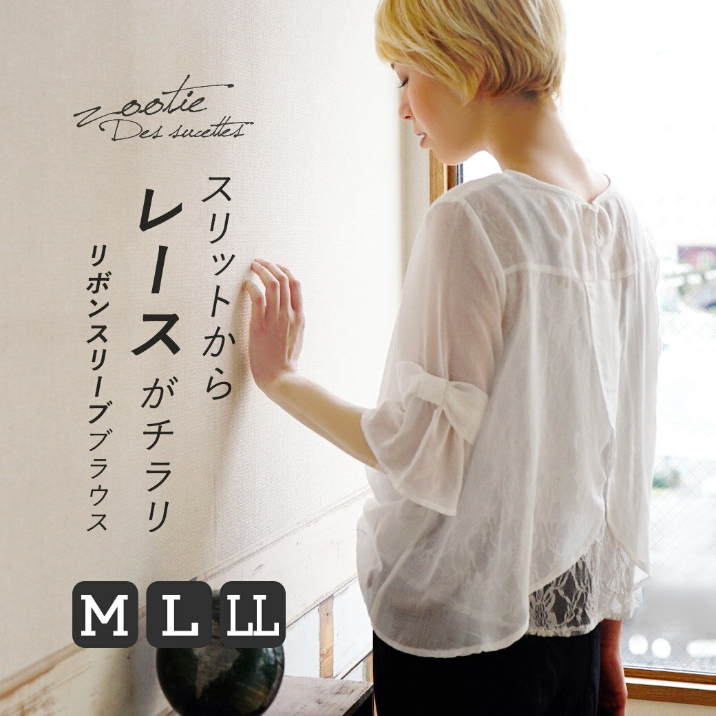 zootie(ズーティー):レーススリット リボンスリーブ プルオーバー ブラウス