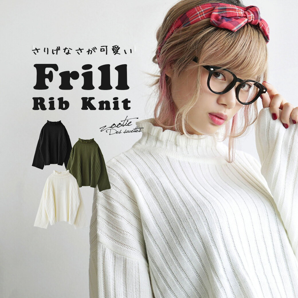 zootie(ズーティー):ふりふりネック ワイドリブニット プルオーバー