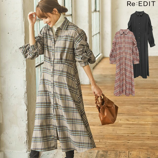 リエディオリジナルワンピース♪ ボリュームのある袖デザインなので 画像のように腕を捲り上げるのがおすすめ! 注目のレギンスコーデにも活躍します