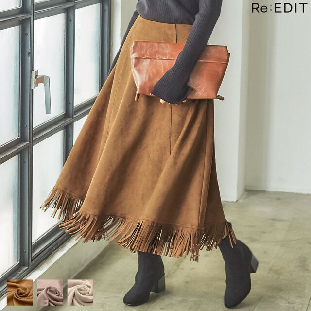 C/S/M/L サイズ展開 スエードタッチフリンジフレアスカート SPECIAL 3,890円(税別)