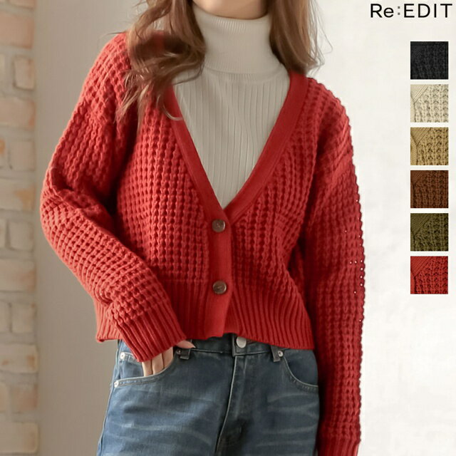 M/L サイズ展開 ショート丈ワッフルニットカーディガン 送料無料 2,590円(税別)  |