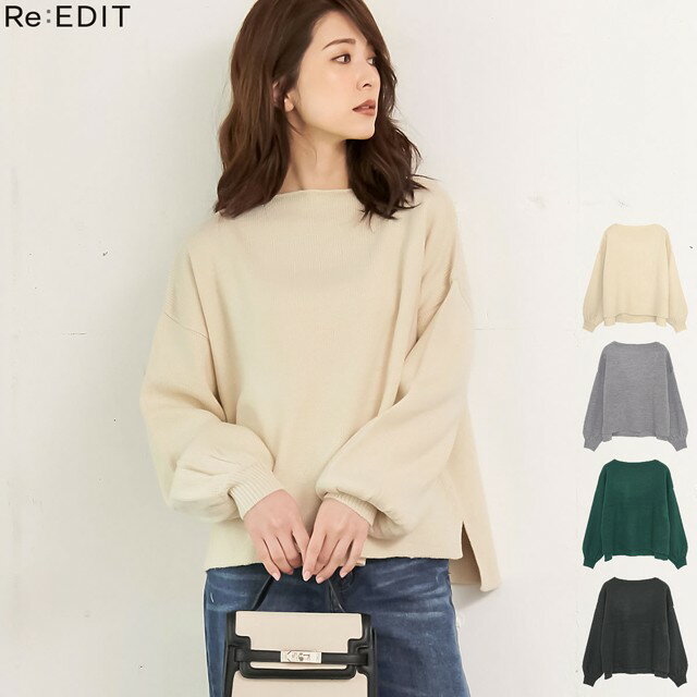 秋冬新作 旬のスタイリングが楽しめる ワイドネックぽわん袖ニットトップス