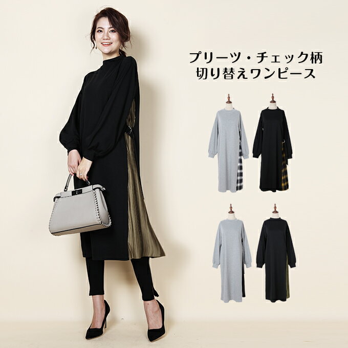プリーツ・チェック柄切り替えワンピース 4,380円 |