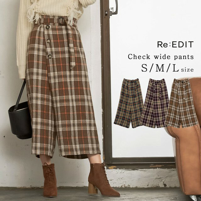 S/M/L サイズ展開 起毛チェック柄ラップ風セミワイドパンツ SPECIAL 3,490円(税別)  |