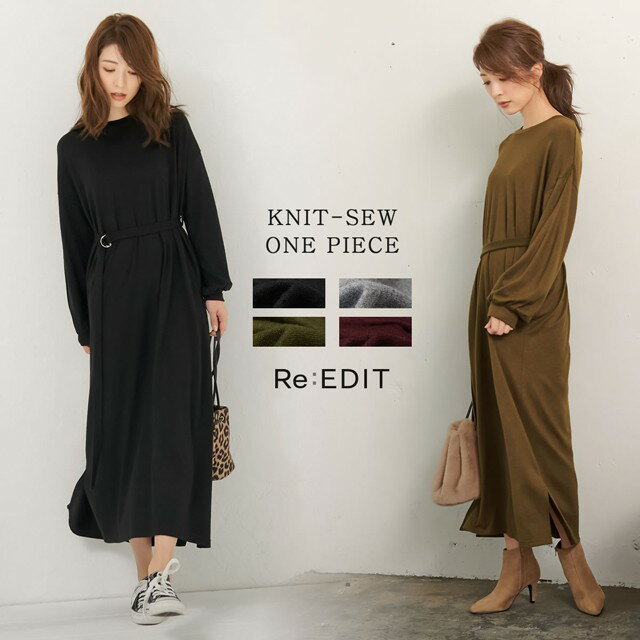 ウエストベルトニットソーロングワンピース ▼24H限定×送料無料▼ 送料無料 2,490円(税別)