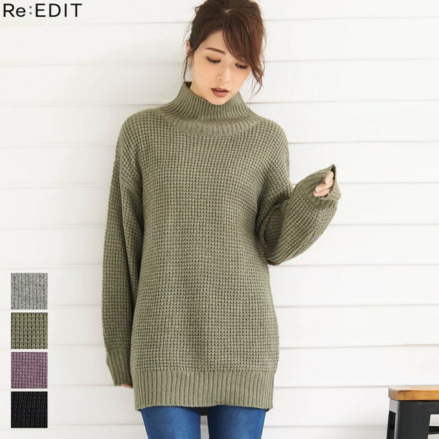 再販超目玉アイテム ふわもこ感が魅力の ワッフルニットチュニック