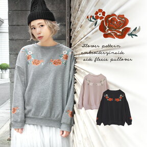 フラワー刺繍 裏起毛ドロッププルオーバー |