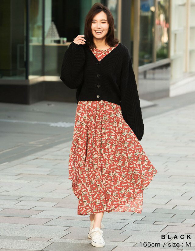 COORDINATE POINT ロング丈なので、プリーツスカートやワイドパンツと レイヤードすると、より今年らしくトレンドライクな着こなしに。 寒い日は、インナーにタートルネックトップスを入れて 暖かい日には羽織りとしても使える優秀アイテム。 ゆとりのあるサイズ感なので体型カバー効果も◎