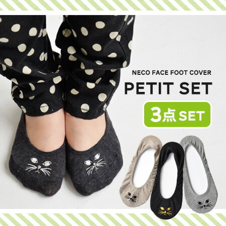 ねこフェイスフットカバー3点セット【返品交換不可】