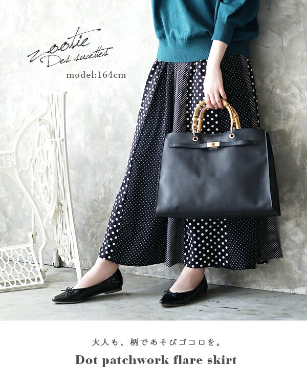 NEW! ミックスドットシフォンスカート いろんなドット生地で切替えられた、12枚ハギのスカート。たっぷり生地を使用し、贅沢で軽やかなフレアが楽しめます。 |