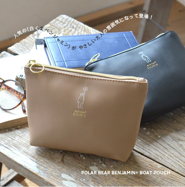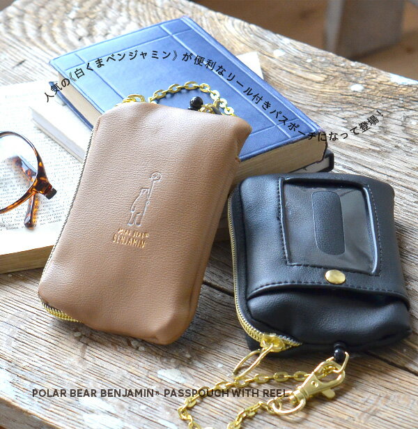 NEW! POLAR BEAR BENJAMIN リール付パスポーチ ハガキがぴったり入るくらいのコスメポーチ。4cmのマチ付き舟形デザインです。内側にはパッチポケットが一つ。素材はくったり柔らかいフェイクレザー。汚れが染み込みにくく、お手入れしやすいのも嬉しいポイント◎ |