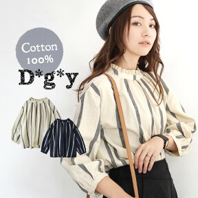 D*g*y(ディージーワイ):コットンストライプ プルオーバーブラウス