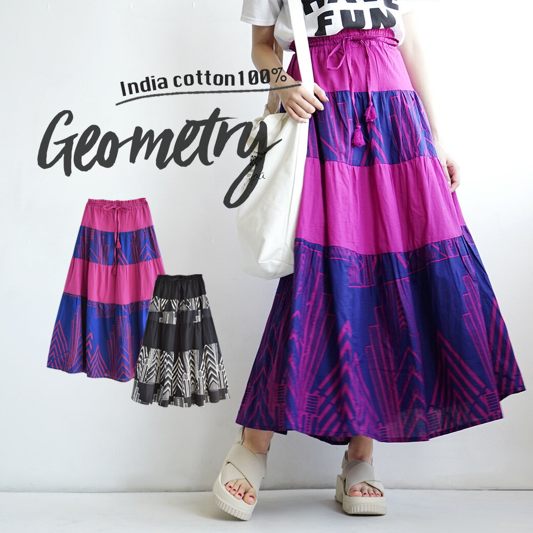 zootie(ズーティー):インドコットン マキシスカート[パープルフラワー]