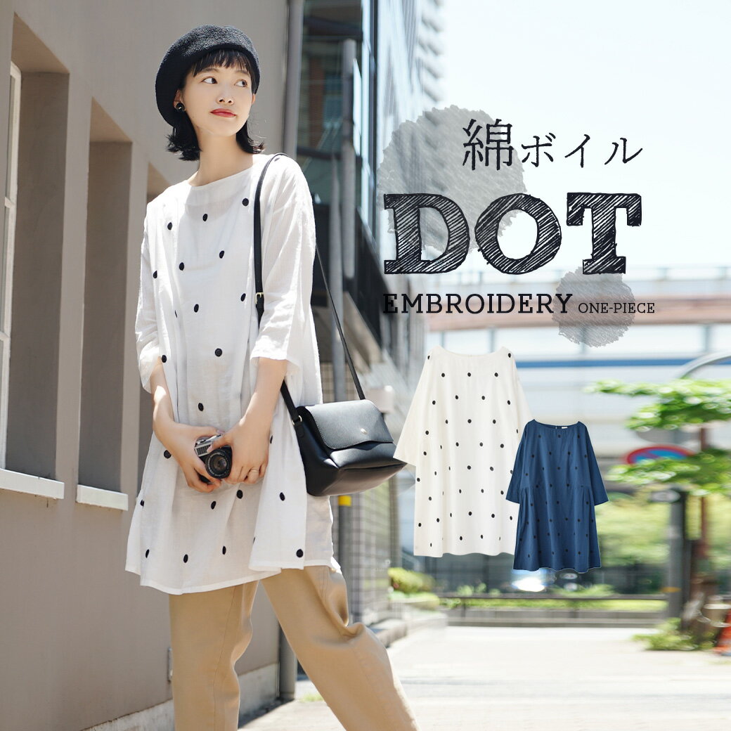 zootie(ズーティー):綿麻ドット刺繍 フレンチスリーブワンピース