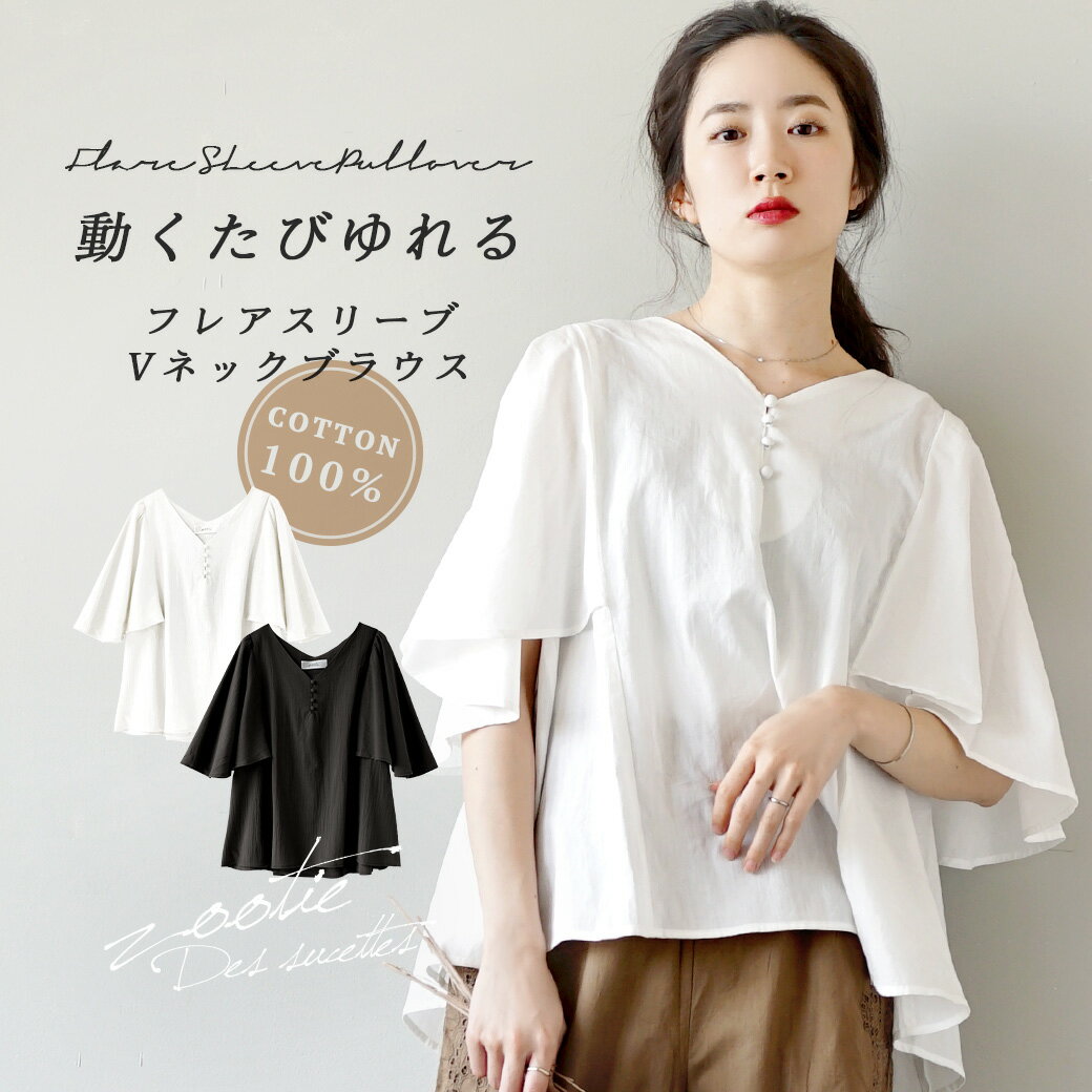zootie(ズーティー):フレアスリーブ Vネック ブラウス