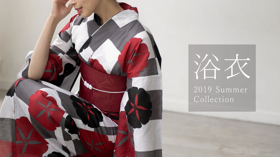 5月30日10時販売スタート! 凛とした美しさを感じさせるモダンさが魅力的 [3点セット]平織り花柄浴衣 ¥8,800 +tax |