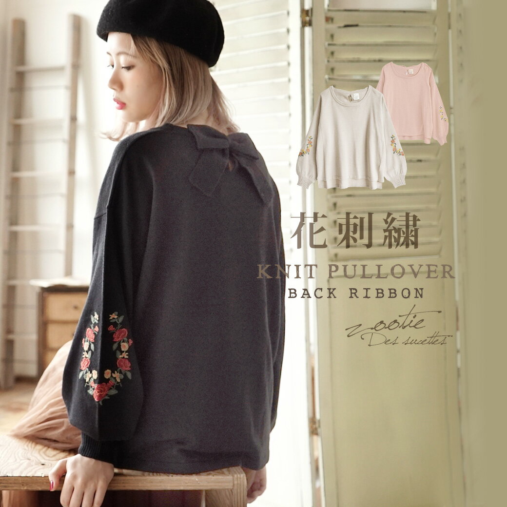 zootie(ズーティー):☆イベント中☆バックリボン フラワー刺しゅうスリーブ プルオーバー